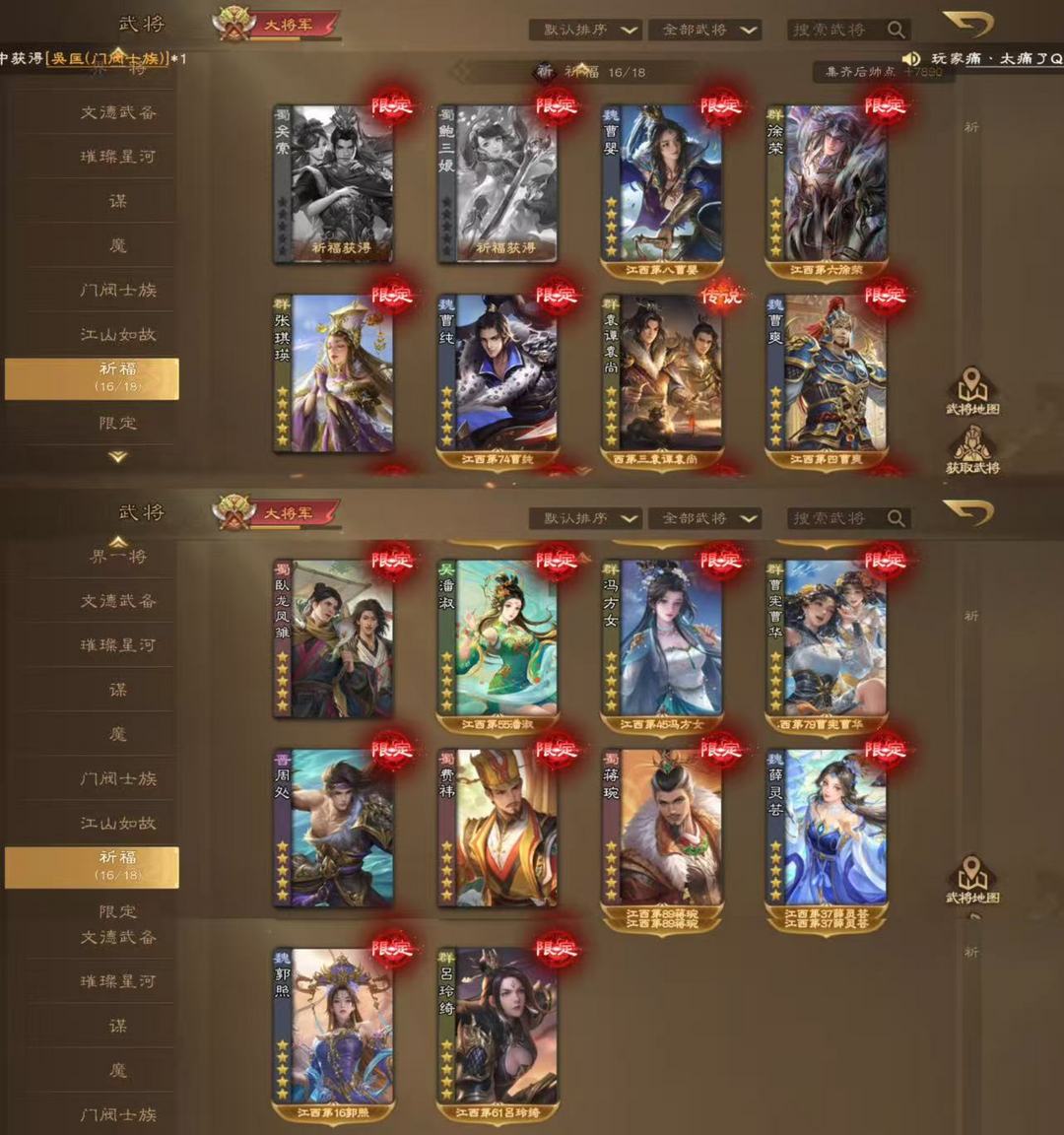 装备描述:出新武将会持续更新(各位老板大家好呀,麻烦大家请不要恶意挂机逃跑 骂人 元宝麻烦大家尽量不要动 如果说缺换将卡任何道具什么的可以留言反馈 我这边多买一些 祝大家玩得开心~)这号是个老号了 一共在上面花了10w+了,出新武将会持续更新。限定皮肤几乎都是全的 现版本强力武将全、大祈福 全小祈福 例举一些排位强力武将(最近新出的董昭❤孙鸢和族荀彧荀莳)❤南华老仙❤谋诸葛亮 族钟琰❤祢衡❤魔貂蝉 司马懿❤四大天王 (谋董卓谋华雄sp曹操sp刘备)❤费祎 ❤️蒋琬❤️族钟琰❤曹宪曹华❤徐荣❤薛灵芸❤郭照❤谋公孙瓒❤谋文丑❤谋庞统❤谋袁术❤谋关羽❤谋张秀 各模式都能玩