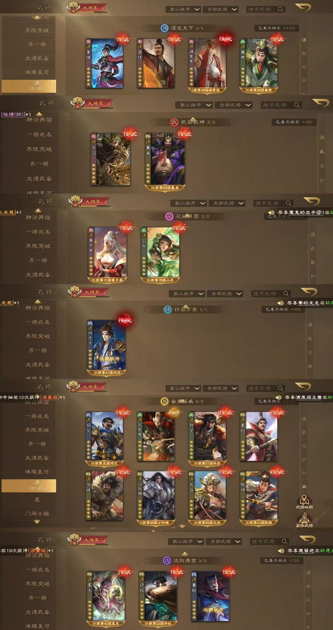 新武将谋董昭孙鸢 V10大将军限定动态皮肤全❤老仙谋诸葛亮谋戏志才祢衡魔貂蝉魔吕布费祎蒋琬祈