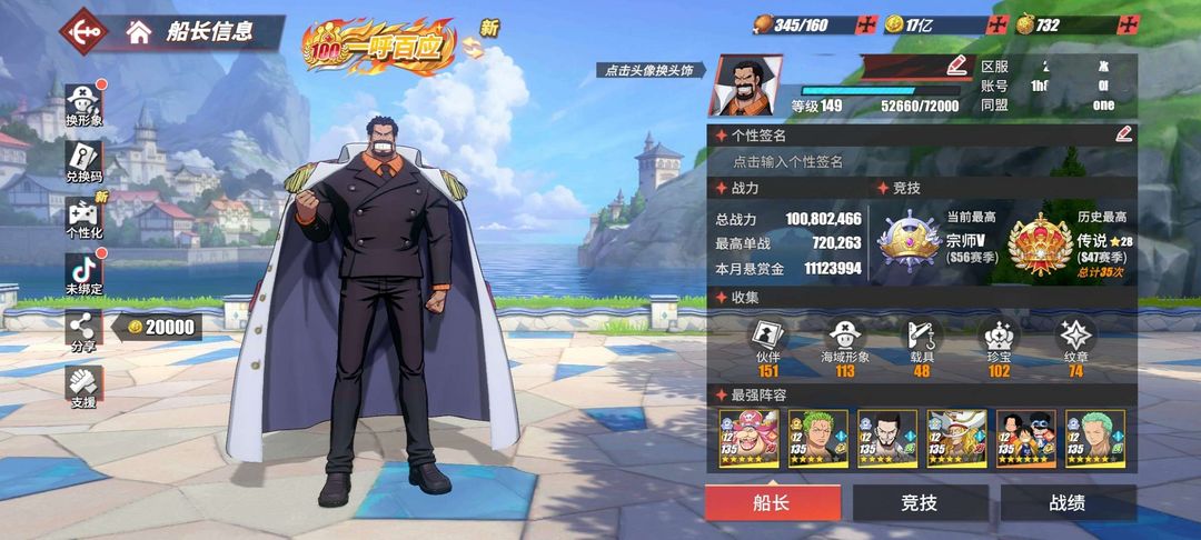 1亿战三神船有青年卡普满角色满98友情多战斗皮肤