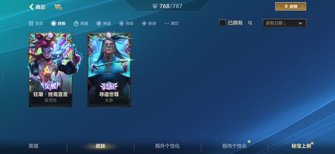 可排位770皮肤2终极金克丝拉满满典藏基本满皮白龙一期粉名时空三期旗帜新皮肤补满