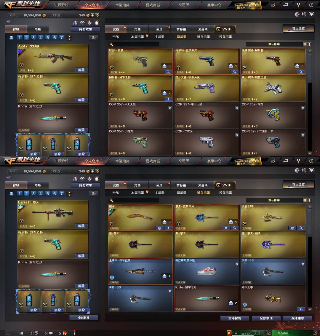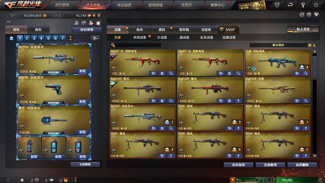 装备描述:【装备道具】:QBZ-冠军之薇★柯尔特-冠军之特★Knife-冠军之刃★火麒麟冠军之心★毁灭冠军之怒★黑骑士冠军之势★火麒麟巅峰荣耀皮肤★M200幻神竞技荣光★柯尔特竞技荣光★擎天-竞技荣光★雷神-幻想★火麒麟CFS2018★毁灭CFS2018★火麒麟盘古★雷神荣耀之魄★屠龙荣耀之锋★白虎-电玩蓝兔★qbz-金色蔷薇★朱雀大炮★荣耀世冠柯克特★USP-雷暴★王者之啸★暗夜x★职业选手★绝迹语言包★6烈龙★6盘龙★斯泰尔蝴蝶★金刚伞电玩蓝兔★滑板鞋★黑骑士白马银枪★MAC-10-涂鸦★★佣兵觉醒-无需换弹★捕食者之眼★死亡之眼★爆破挑战全装★生化弹夹防化服变异宝贝死亡之眼对讲机不退包★佣兵觉醒无需换弹手斧镜减速雷★捕食者之眼查看血量★