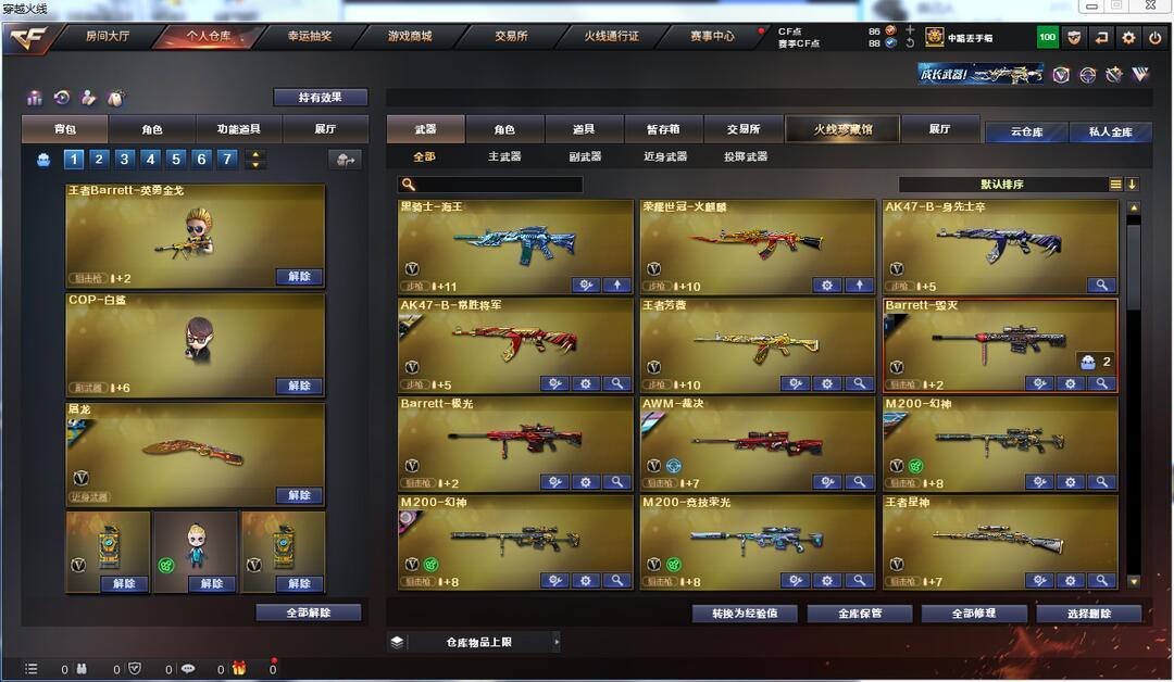 装备描述:传说灵眸梦魔圣灵星火宠儿N9荣耀六皮肤幻神音效卡宙斯套蝶刃6烈蝴蝶QBZ幻影白虎裁决满皮肤满COP挑战满套装