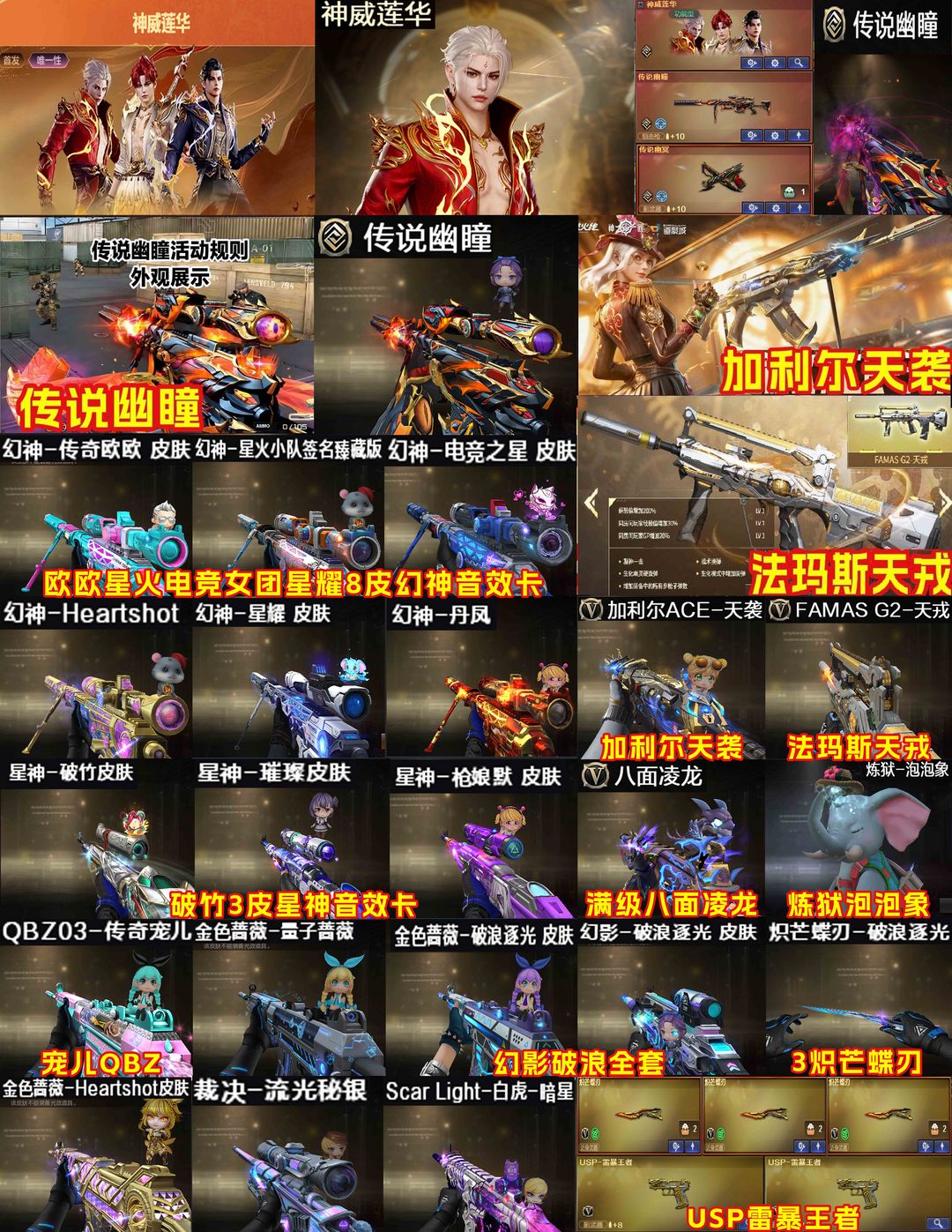 神威莲华八面凌龙泡泡象❤天袭天戎幻影❤欧欧星火电竞女团星耀8皮幻神音效卡❤传说幽瞳3蝶刃隼满生化挑战