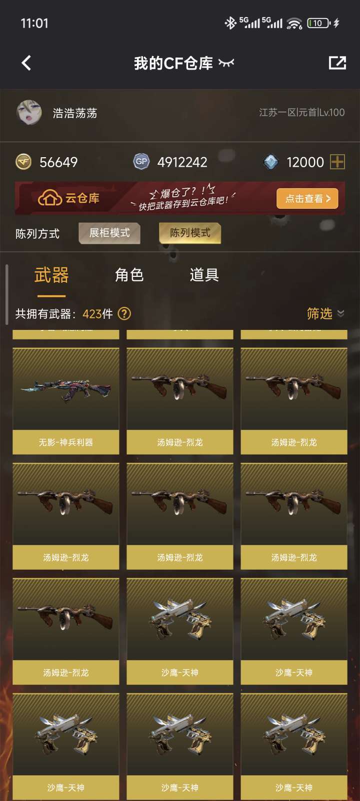 生化号,6烈龙,6盘龙,4防角色,斯太尔蝴蝶,炼狱悦蓝,幻神。其余神器若干,排位可玩
