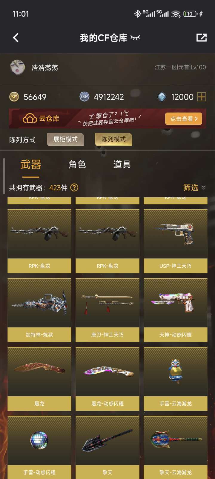 装备描述:生化号,6烈龙,6盘龙,4防角色,斯太尔蝴蝶,炼狱悦蓝,幻神。其余神器若干,排位可玩