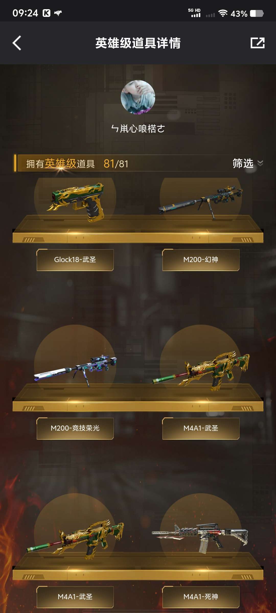 【英雄:72 王者:15】堕天使☆M200-竞技荣光☆炼狱-悦蓝-觉醒版☆M4A1-黑骑士音效卡☆