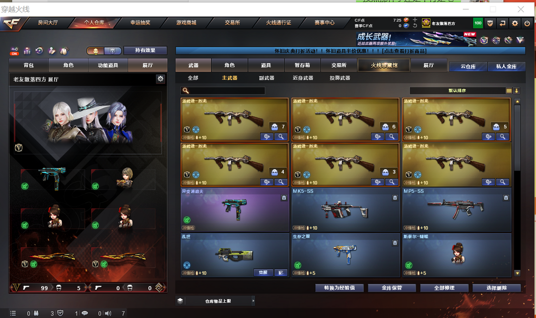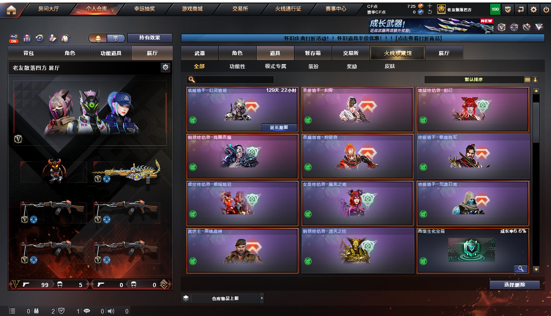 限制: 租号3次及以上 |装备描述:王者武器:烟雾弹-雷暴王者;王者冰锋;王者星霆;超新星-悦享-觉醒版;炼狱-悦蓝-觉醒版 英雄武器:FAMAS G2-天戎;QBZ03-天罚;Barrett-毁灭;AWM-裁决;白虎-电玩蓝兔;Barrett-碧霄极光;烟雾弹-玄豹;机械迷城-穹宇;龙啸-热带奇洋;手雷-热带奇洋;RPK-盘龙;QBZ03-金色蔷薇;黑武士-锦绣游龙;炽芒蝶刃;黑骑士-海王;G36C-幻影;AA-12-雷霆;手雷-云海游龙;COP 357-幻灵;高爆手雷-幻灵;烟雾弹-幻灵;闪光弹-幻灵;幻灵之锋;M4A1-幻灵;M200-幻神;龙啸-烈火龙威;烈火-动感闪耀;屠龙-动感闪耀;天神-动感闪耀;手雷-动感闪耀;沙鹰-修罗;加特林-炼狱;无影-神兵利器;AK47-火麒麟;麒麟刺;擎天;屠龙;AK47-黑武士;沙鹰-天神;汤姆逊-烈龙;龙啸;女皇利刃-幻兽;沙鹰-幻兽;烟雾弹-幻兽;闪光弹-幻兽;高爆手雷-幻兽;AK12-天启;M4A1-雷神;AN94-超新星;M4A1-黑龙;M4A1-玫瑰精灵 角色:葵;影豹;隼;司雨;毒蝰术士;幻影;复仇者;堕天使;陈龙野-X;新娜塔莎;暗夜-X;王者春;麻雀;剑齿虎-X