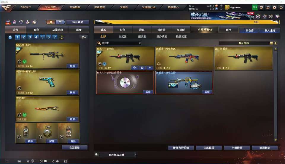 限制: 租号30次及以上 |装备描述:请文明游戏,禁止一切宏 dma 板子 一切科技 如开挂导致封号 报警+追究到底 幻神+冠幻+音效卡 +仓神(觉醒) 裁决+巅峰荣耀 +音效卡 毁灭+cfs2018+音效卡 白虎+巅峰荣耀+音效卡 黑骑士+冠军之势+音效卡 G36C幻影+音效卡 qbz金色蔷薇+荣耀世冠ep 天绒 蝴蝶刀x3 荣耀世冠ep柯尔特+冠军之特+usp王者雷暴(觉醒)+usp冥王x4