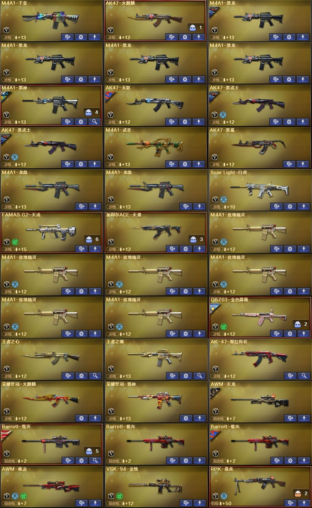 枪王4【北部】传说莲华⭐加利尔天袭+天戎⭐白虎+音qbz世冠ep⭐炼狱护林狮⭐蝴蝶刀
