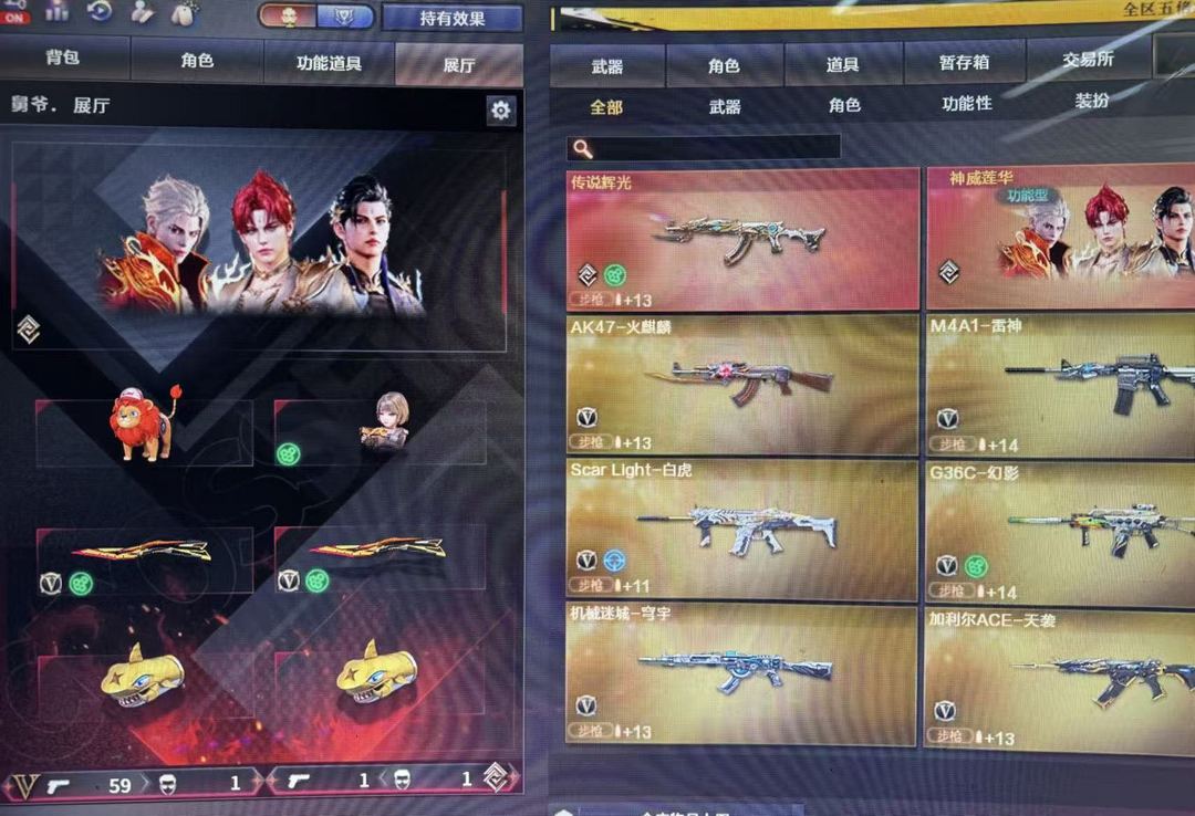 生化满配神威莲华⭐️五盘五烈⭐️斯泰尔小人枪⭐️炼狱狮子⭐️双蝴蝶刀双鲨臂手套⭐️猎手终结者带皮肤