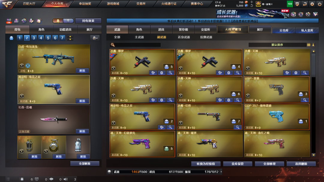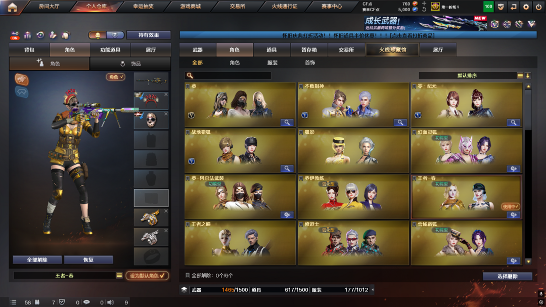 限制: 租号15次及以上 | 撤单率<50%才可租用此帐号装备描述:队掏全装!角色齐 有黑色柯尔特。新增加柯尔特电竞之星➕qbz电竞之星皮+蝴蝶生化爆破全装!+极地霜湖cop。(蓝水晶cop)➕王者雷暴二套和王者春四防 新更新usp雷暴,还有玄豹套装 巅峰赛420豆 如有显示不可排位是系统bug。可以排位的! 祝各位老板身体健康,万事如意,排位把把连胜! 小提示:排位禁止退,禁止开任何科技鼠标宏感恩! 如开科技宏封禁账号会连同追究责任!现在都是实名制了! 违者一律拉黑! 别动cf点感谢感谢大家! 小店家很不容易的,求各路大佬放过此号 非常感谢!!祝您游戏愉快。 很多装备都有,装备高v,多王者,多皮肤,光效玩偶等等。 荣耀皮肤 王者冰锋6烈龙 截图不是最新。玄豹有一套丛林匕首。投掷武器一套。 进入广东一区即可