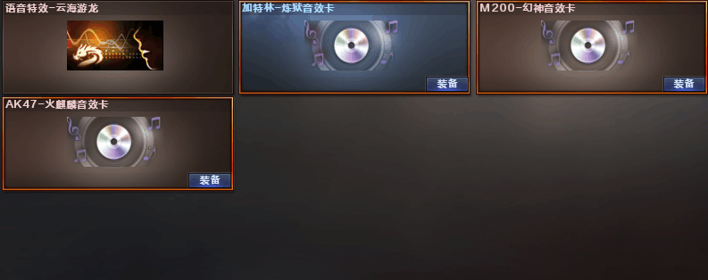 装备描述:传说灵眸电流骇客降龙幻神双音效卡紫橙QBZ枪娘星神璀璨火麒白虎少林地狱火幻火炼狱三音效卡挑战满套装