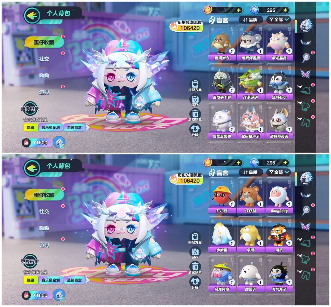 装备描述:安卓官服 15W潮流值20至臻角色盲盒 90典藏盲盒角色 月影摇摇兔 (兔兔车) (碎晶幻翼) 至臻角色:千山绘灵青岚 音爆曜星(隐藏) 星云船长洛洛(隐藏) 主唱曜星 玉龙扶风 圣翼天使-堕 蛋糕龙嗝嗝 精灵莉斯尔 暴龙崽崽 雪原之心伊芙 川剧少女梧桐 太空船长贝贝 剧院院长魅影 蔷薇白皇后 捕梦软软 稀有盲盒角色:冰霜骑士(隐藏) 水母莱莱(隐藏) 飞天小猪班尼 奥特曼 红小豆 小羊 圆圆子 蜜蜂小羊 水波蛋 等各种