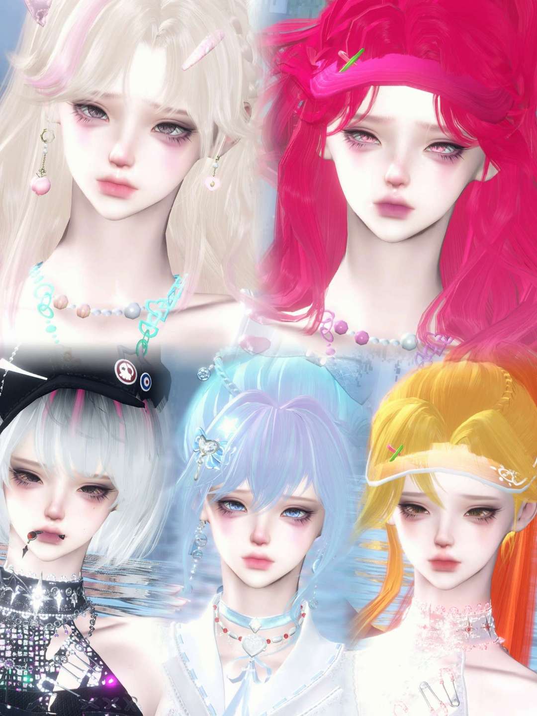 逆水寒账号女4自染头1悠光转盘头5天赏头2阴阳头