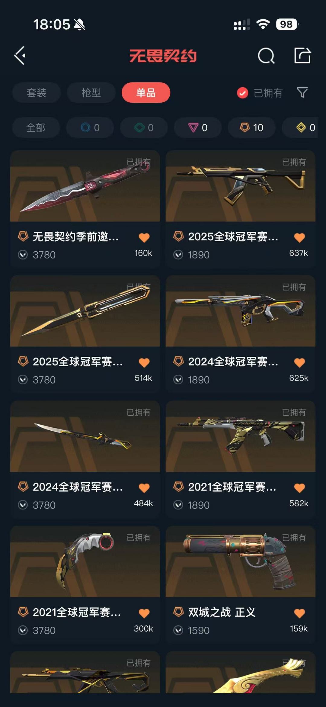 可排❤怜悯之刃❤颗秒混沌2套❤21345冠军离火爆爆多限定❤超时空奇点威龙般若2套❤盖亚ak25爪