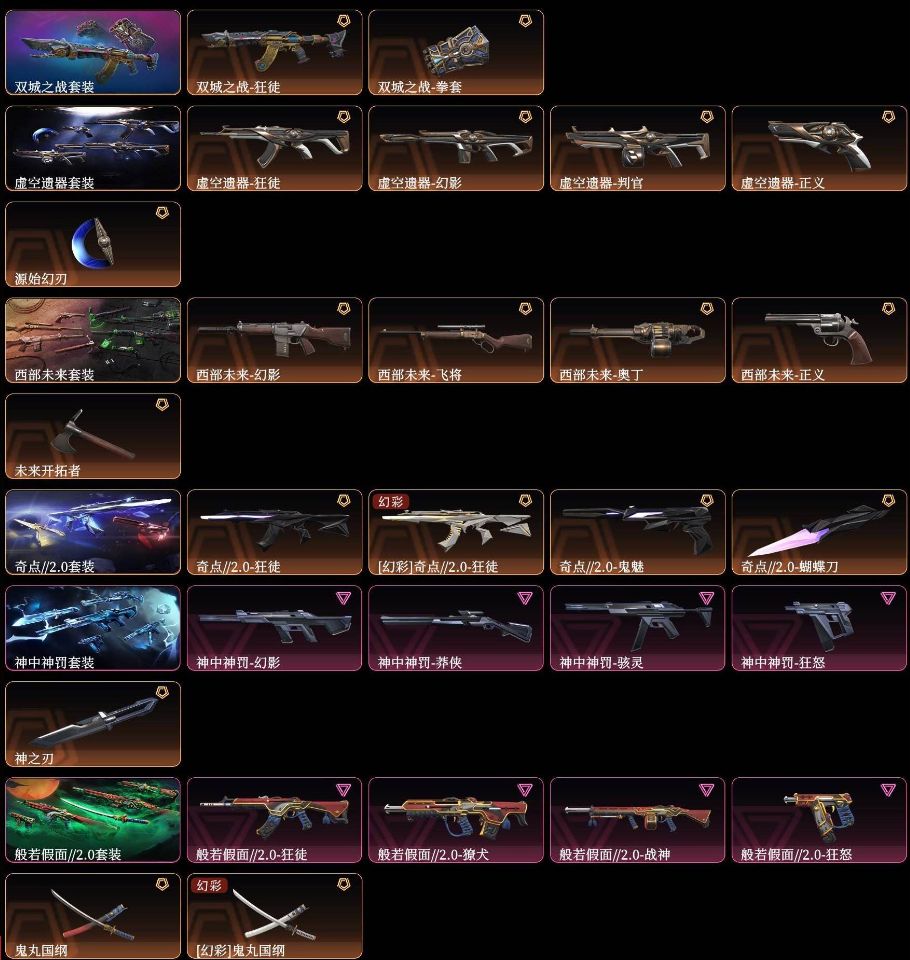 可排位15w大库存☆光荣☆VCT爪刀☆神之刃☆虚空套☆西部套☆双城之战☆奇点套☆各种散件☆炫彩