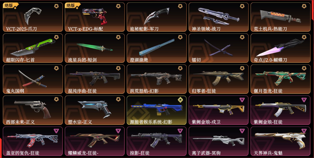 VCT爪+鬼丸+雷切+蝴蝶刀+鱼扇⭐混沌归零苍龙盖亚紫阙掠夺耀鳞⭐流脓源能幻影⭐EDG标配天神鬼魅
