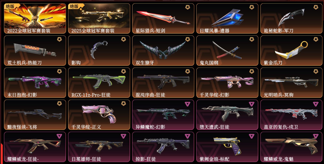 禁排位22冠军套25冠军套⭐紫金爪鬼丸影钩⭐AK显卡混沌日冕掠夺弃王耀鳞⭐泡泡莲花魔蛇幻影⭐莲花正义