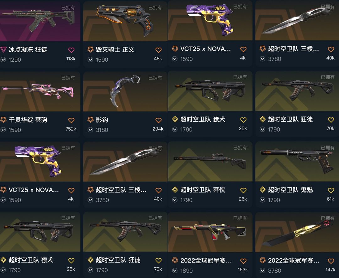 禁排✅精品热门★影钩掠夺爪刀22冠军套★冰点超时空卫队套装★三棱锉★vct标配★毁灭正义★莲花大狙