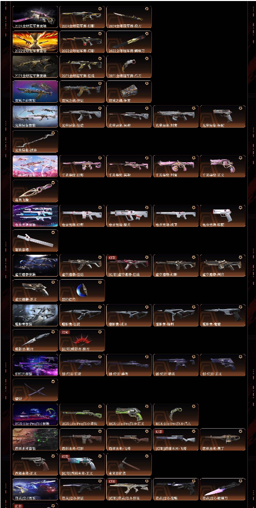 装备描述:悲悯之刃超时空卫队光荣异象电音光谱21全球22全球24全球双城之战千灵华绽虚空遗器噬影者创纪元显卡3.0西部未来奇点2.0艾莉沃的梦之翼源能者娱乐系统神中神罚耀鳞威龙般若假面2.0日冕雄师天界神兵2.0盖世英雄堕天遗武苍龙之刃日耀风暴vct爪刀超限闪存黑波之刃剥皮小刀显卡狂徒光明哨兵狂徒混沌序曲狂徒洪荒怒焰狂徒破败军械幻影塑水宗狂徒全息波普2.0狂徒机动狂飙狂徒光明哨兵2.0幻影归零者狂徒偃月苍龙狂徒奇点幻影上古龙炎狂徒协议撩犬异鳞魔蛇幻影紫阙金琅狂徒盖亚的复仇狂徒侦察力量幻影冰点凝结狂徒般若假面幻影海洋之心狂徒掠影狂徒黑市狂徒塑水宗飞将偃月苍龙冥驹上古龙炎冥驹天界神兵飞将全息波普奥丁奇点骇灵天界神兵蜂刺紫阙金琅雄鹿vctedg标配vctlev标配洪荒怒焰短炮塑水宗正义全息波普狂怒归零者短炮奇点正义协议正义天界神兵鬼魅紫阙金琅标配离子武器正义