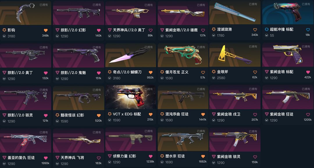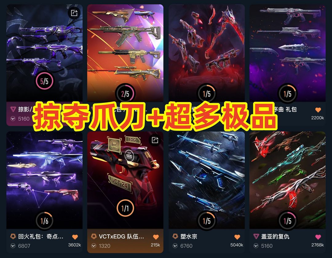 可排✅影钩掠夺爪刀/鱼扇蝴蝶刀/盖亚紫金混沌塑水宗/侦察力量怪谈/紫金标配/天界奥丁/vct标配