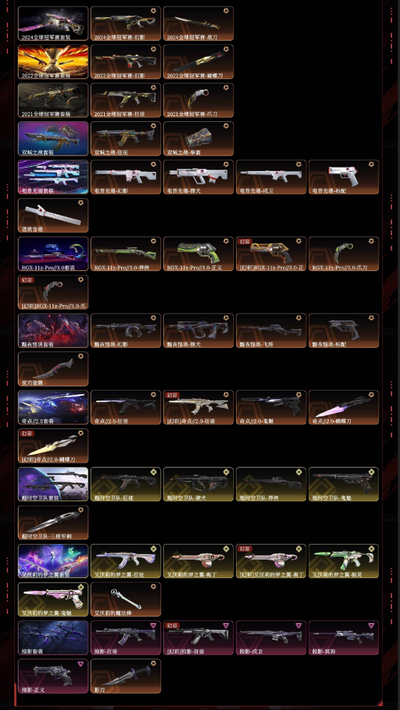 装备描述:悲悯之刃离火刃超时空卫队电音光谱双城之战2021全球2022全球2024全球显卡3.0黯夜怪谈奇点2.0艾莉沃的梦之翼掠影苍龙之刃vct爪刀落英飞旋剥皮小刀侦察力量蝴蝶刀光荣异象狂徒显卡狂徒虚空遗器狂徒噬影者狂徒创纪元狂徒光明哨兵狂徒混沌序曲狂徒千灵华绽幻影洪荒怒焰幻影塑水宗狂徒机动狂飙狂徒光明哨兵2.0幻影砰砰特工队幻影归零者狂徒偃月苍龙狂徒协议幻影离子武器2.0狂徒堕天遗武狂徒紫阙金琅狂徒盖亚的复仇狂徒侦察力量幻影般若假面幻影海洋之星狂徒归零者冥驹上古龙炎冥驹离子武器冥驹vctfnc标配vctedg标配西部未来正义天界神兵鬼魅紫阙金琅标配离子武器正义