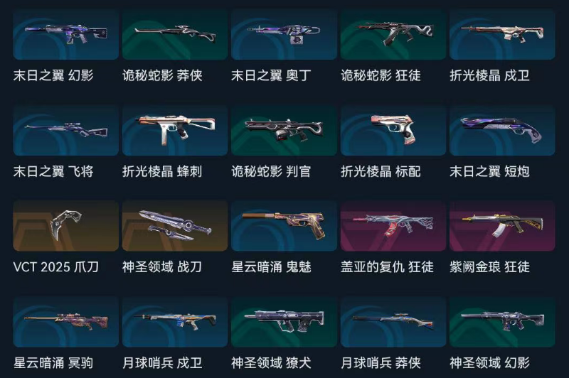 冻结秒解✨可排✨多刀精品号✨大库存✨VCT 2025赛季套装✨黯夜怪谈套装✨盖亚的复仇-狂徒✨紫阙金