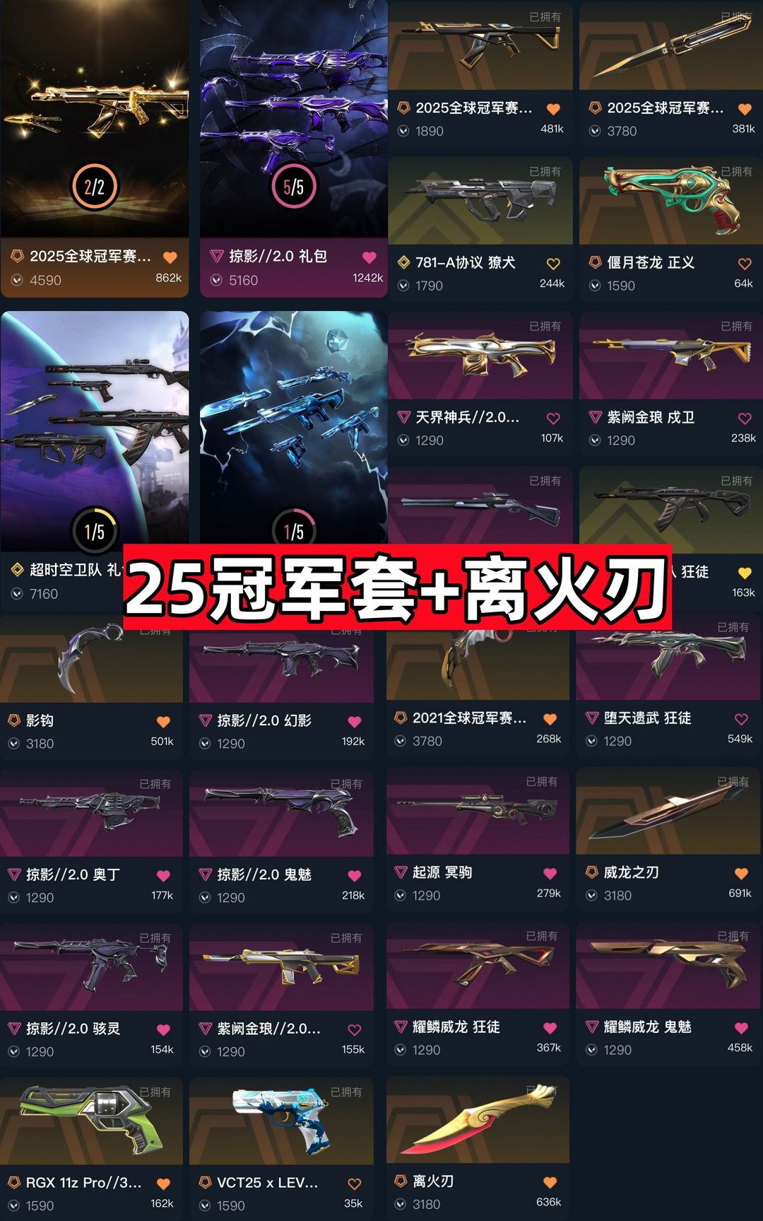可排✅25冠军套⭐超时空卫队弃王威龙狂徒⭐影钩离火刃威龙之刃21冠军爪刀⭐掠影2.0套⭐起源神中神罚