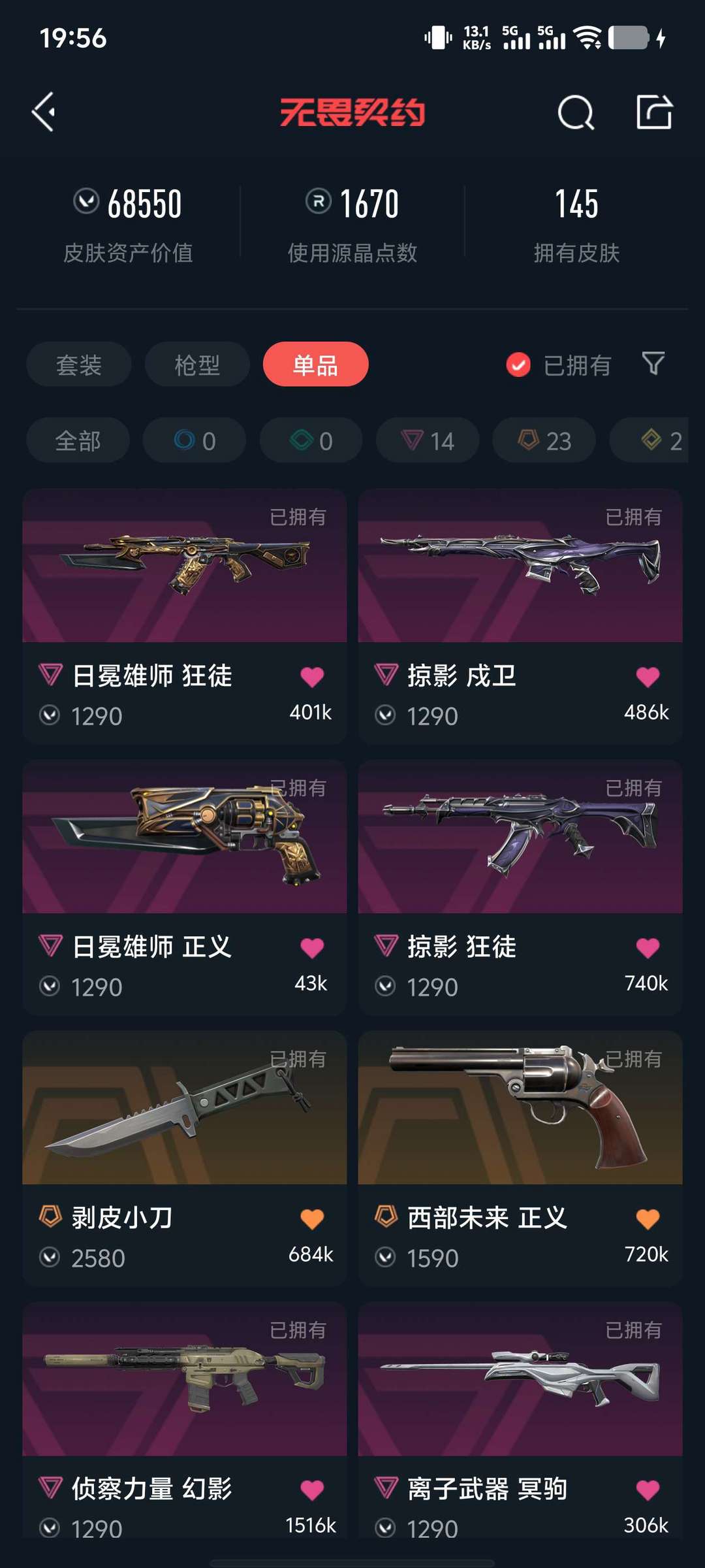 可排位。六万八库存。九狂徒四幻影四正义六刀型。少爷套满配。带妹专用粉色套。