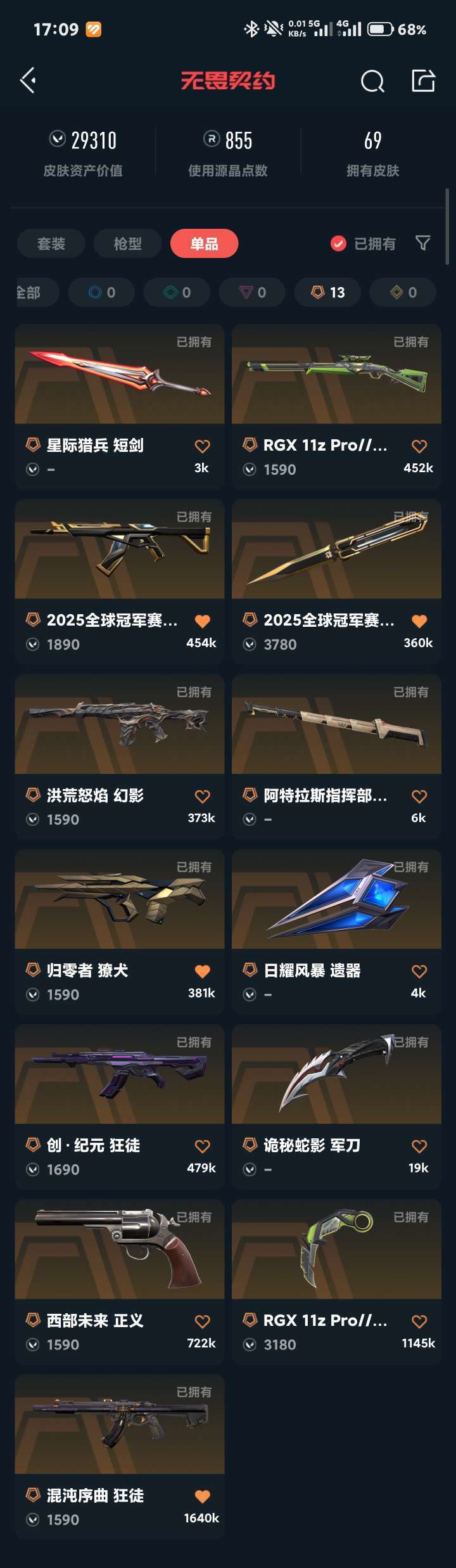 武器皮肤数量:69