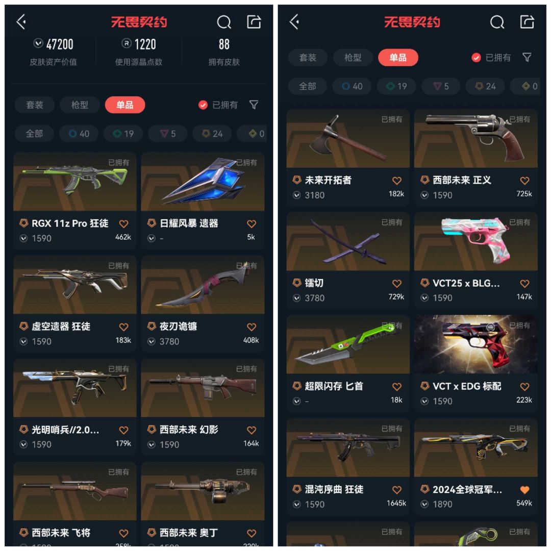 禁排位9W库存✨虚空/混沌/盖亚/塑水宗/ 紫金AK✨24冠军✨西部未来套✨RGX3.0套✨蝴蝶刀