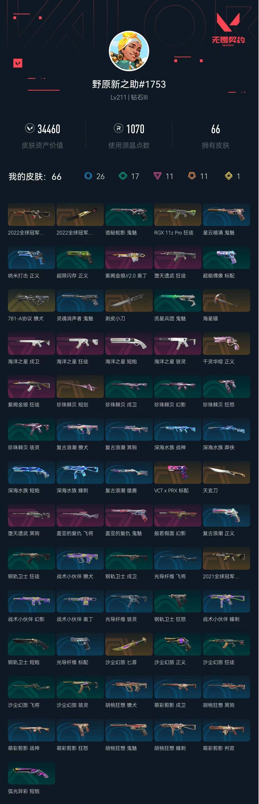 武器皮肤数量:66