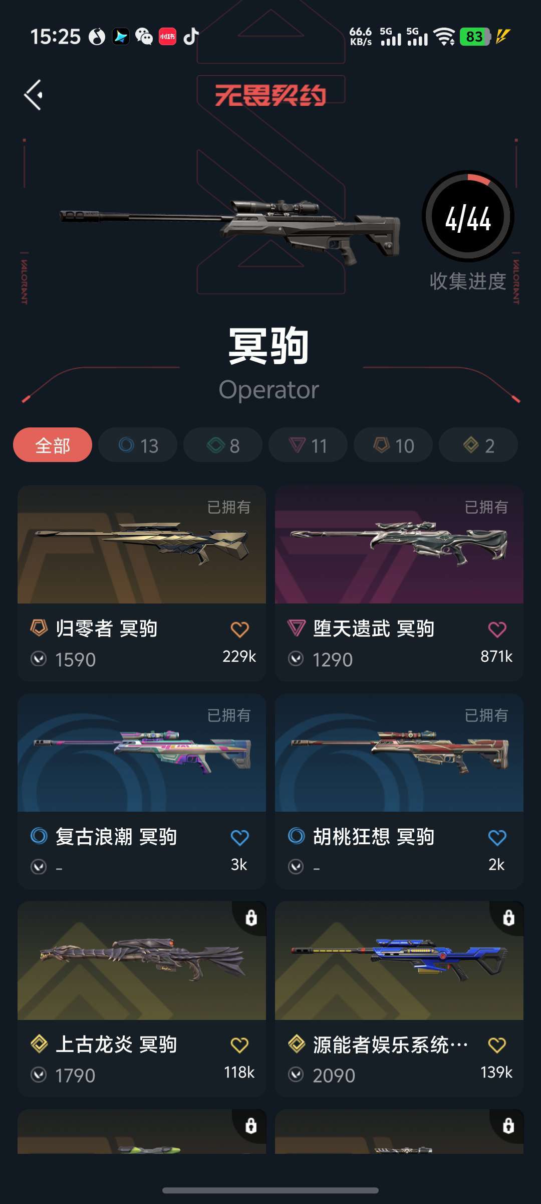 武器皮肤数量:58