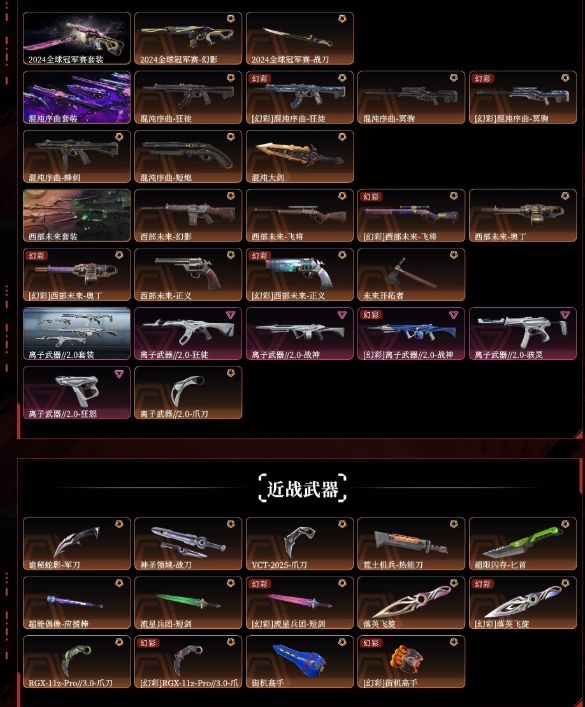 装备描述:可排位✨7w库存1200R点✨离子武器//2.0套装(离子武器//2.0-狂徒,离子武器//2.0-战神,离子武器//2.0-骇灵,离子武器//2.0-狂怒,离子武器//2.0-爪刀)西部未来套装(西部未来-幻影,西部未来-奥丁,西部未来-飞将,西部未来-正义,未来开拓者)混沌序曲套装(混沌序曲-狂徒,混沌序曲-冥驹,混沌序曲-蜂刺,混沌序曲-短炮,混沌大剑)2024全球冠军赛套装(2024全球冠军赛-幻影,2024全球冠军赛-战刀)✨VCT-2025-爪刀 落英飞旋,RGX-11z-Pro//3.0-爪刀,街机高手✨虚空遗器-狂徒,千灵华绽-幻影,归零者//2.0-戍卫,机动狂飙-狂徒,堕天遗武-狂徒,盖亚的复仇-狂徒,侦察力量-幻影,海洋之星-狂徒,掠影-狂徒✨上古龙炎-冥驹✨上古龙炎-冥驹✨光明哨兵//2.0-奥丁✨上古龙炎-判官,紫阙金琅//2.0-雄鹿✨VCT25-x-EDG-标配✨