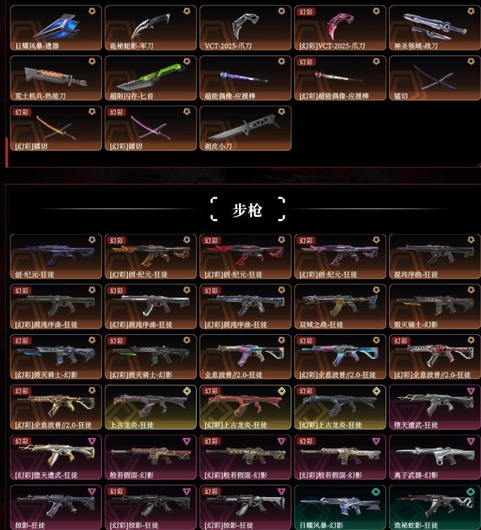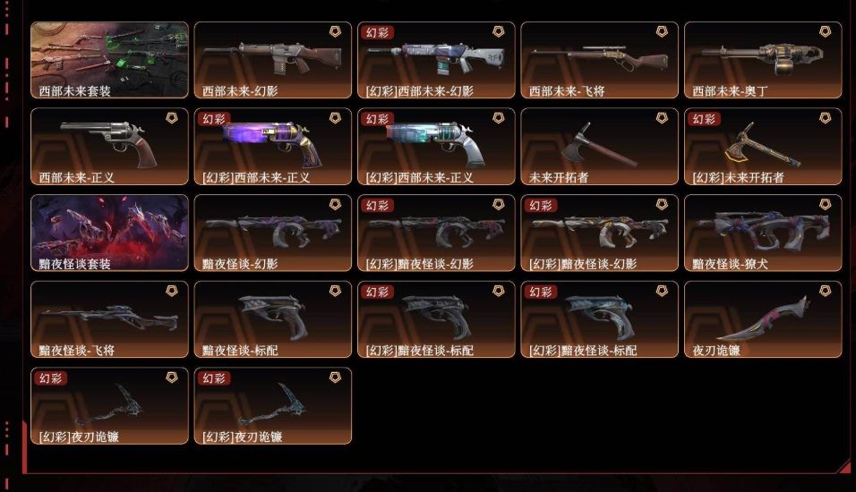 装备描述:可排位✨5w库存1300R点✨西部未来套装(西部未来-幻影,西部未来-奥丁,西部未来-飞将,西部未来-正义,未来开拓者)黯夜怪谈套装(黯夜怪谈-幻影,黯夜怪谈-獠犬,黯夜怪谈-飞将,黯夜怪谈-标配,夜刃诡镰)✨VCT-2025-爪刀,神圣领域-战刀,荒土机兵-热能刀,超限闪存-匕首,超能偶像-应援棒,镭切,剥皮小刀✨创·纪元-狂徒,混沌序曲-狂徒,双城之战-狂徒,毁灭骑士-幻影,全息波普//2.0-狂徒,上古龙炎-狂徒,堕天遗武-狂徒,般若假面-幻影,离子武器-幻影,掠影-狂徒✨掠影-冥驹✨VCT25-x-BLG-标配,奇点-正义,天界神兵-鬼魅✨