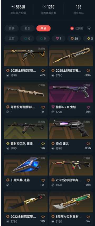 武器皮肤数量:103