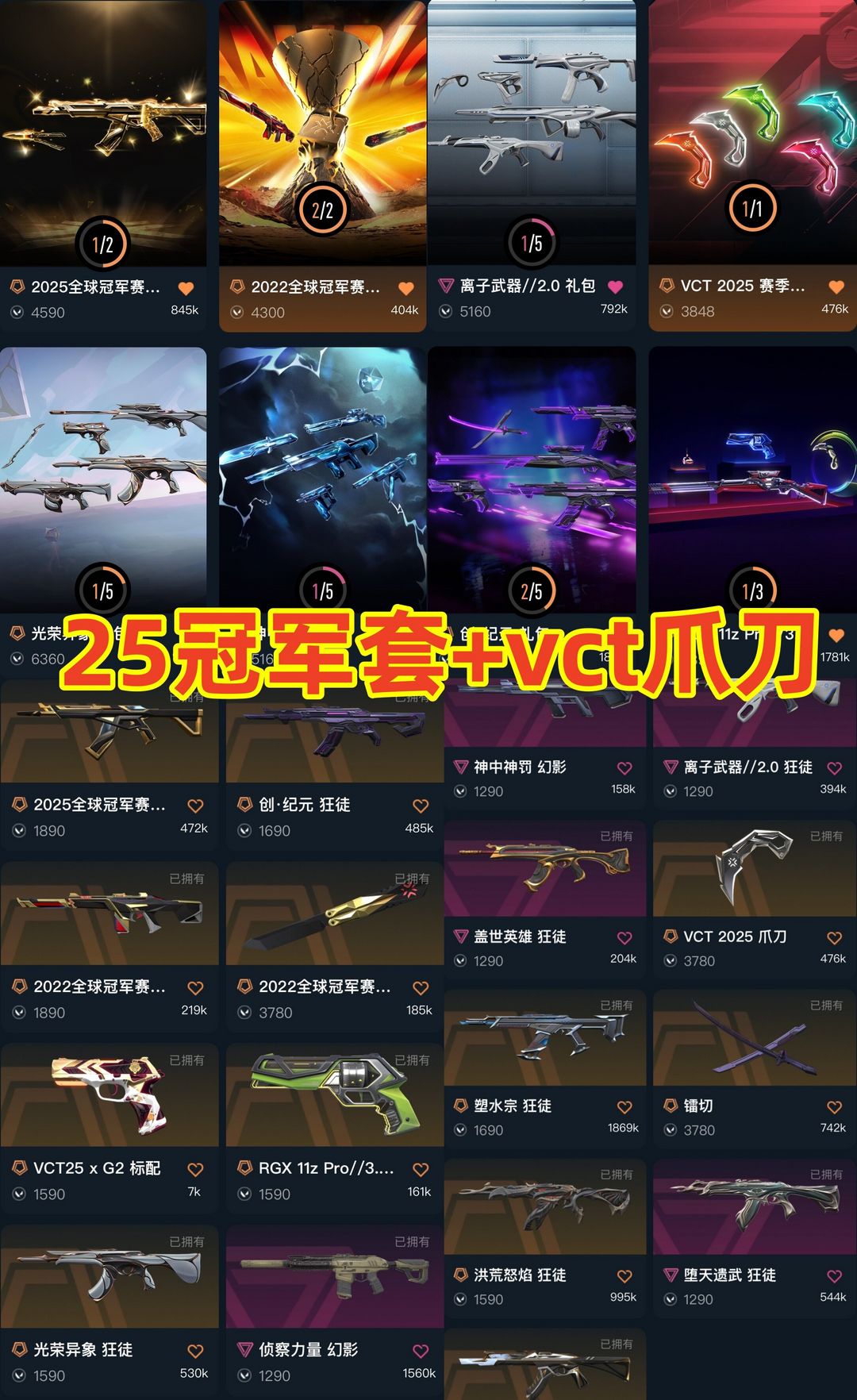 可排✅25冠军22冠军套★光荣异象创纪元塑水宗离子2.0猴子弃王光明哨兵★vct爪刀镭切蝴蝶刀★侦查