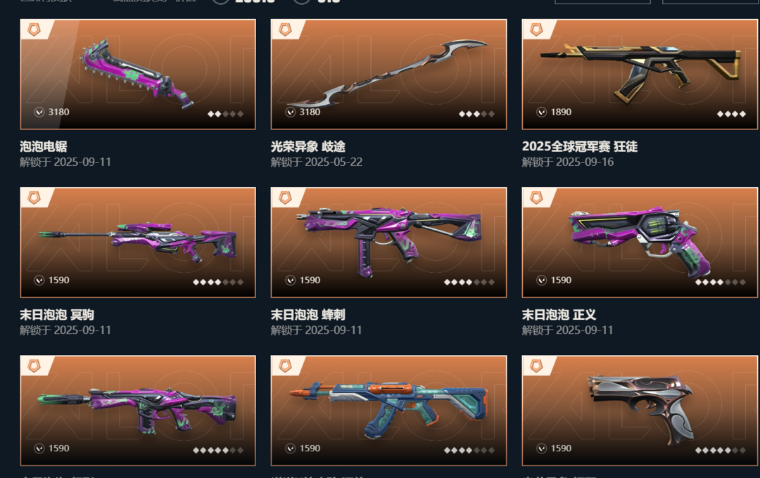 装备描述:末日泡泡套装光荣异象套装25冠军AK流脓M4破败鬼魅掠夺戍卫归零獠犬水枪AK狮子AK