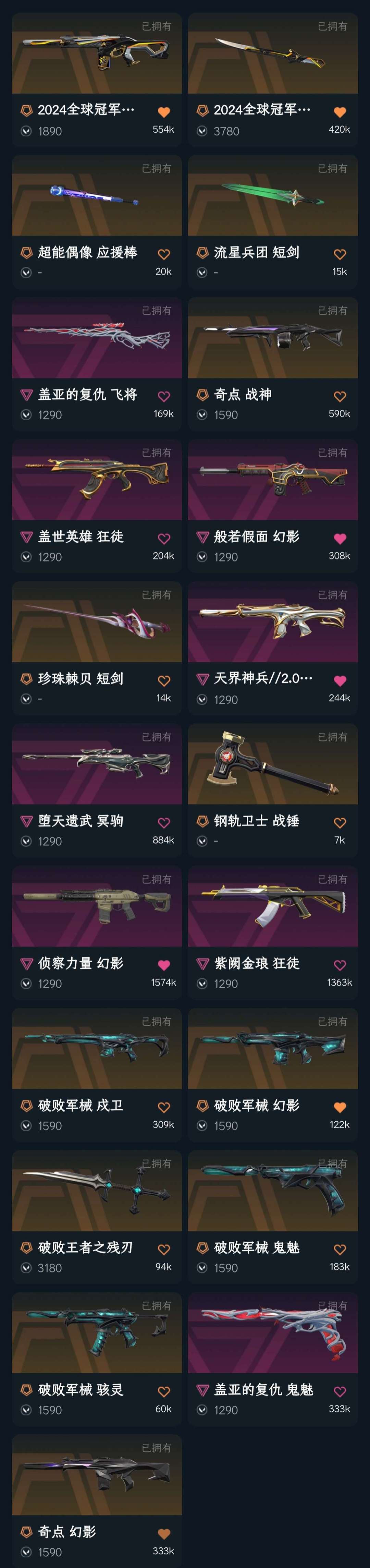 24冠军套/破败套-幻影:天界/假面/侦查/奇点 狂徒:紫金/猴子 大狙:天界