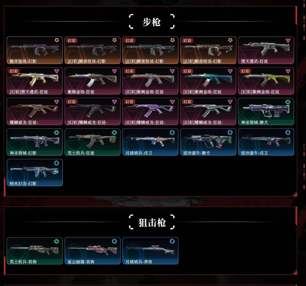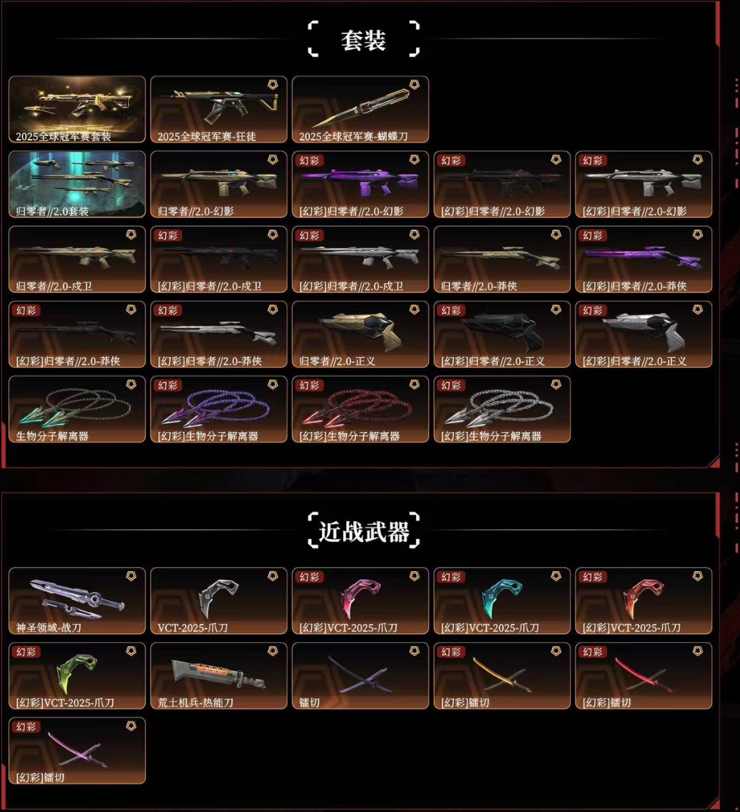 25冠军套♥归零2.0套满炫彩♥VCT爪刀♥雷切♥暗夜怪谈幻影♥堕天遗武狂徒♥紫金狂徒♥耀鳞威龙狂徒