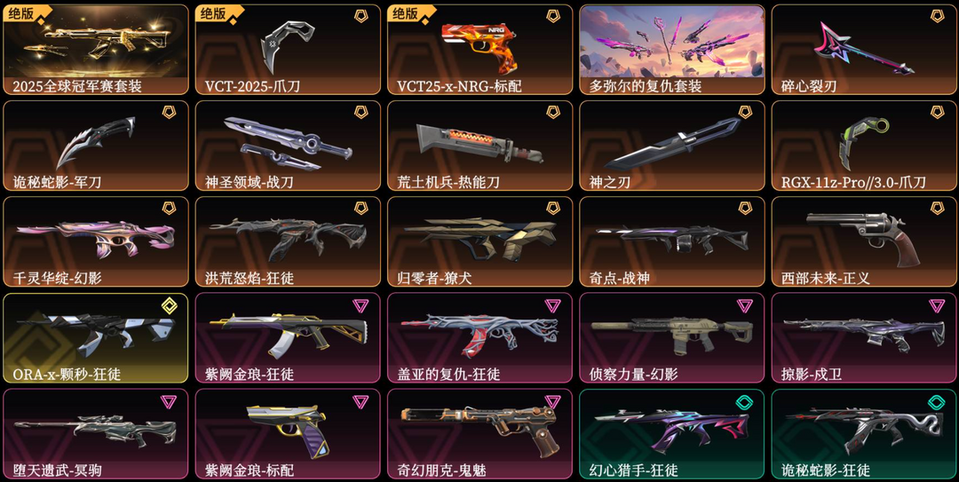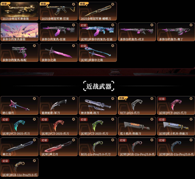 可排位大库存☆25全球套☆25爪刀☆多弥尔的复仇☆RGX☆颗秒☆盖亚☆紫金☆侦查☆流脓☆各种散☆炫彩