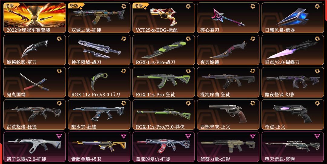 可排位大库存☆22套☆双城☆VCT25-X-EDG标配☆RXG-11z☆混沌☆黯夜☆洪荒☆塑水宗☆