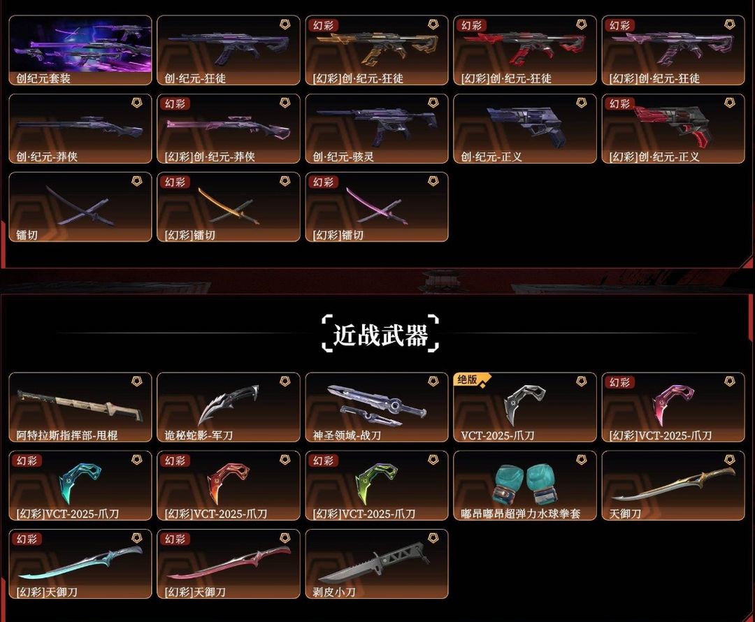 可排位✨VCT爪刀/22/25冠军✨创纪元套装✨嘟昂嘟昂拳套/天御刀/剥皮小刀✨异象/虚空/离子/紫