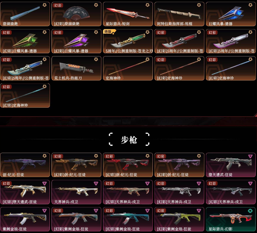 可排位大库存☆5周年☆掠影套☆奇幻朋可☆紫金☆VCT☆遗武☆创*纪元☆定海神针☆各种散件☆炫彩