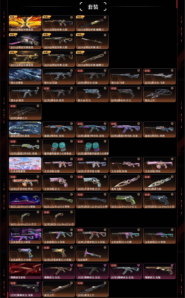 装备描述:2025冠军2024冠军2022冠军塑水宗滋滋特攻队千灵华绽显卡3.0全息波普2.0耀鳞威龙苍龙之刃vct爪刀超限闪存匕首沙尘幻旅匕首天玄刀剥皮小刀魔术火花侦察力量蝴蝶刀多弥尔的复仇狂徒虚空遗器狂徒创纪元狂徒混沌序曲狂徒双城之战狂徒偃月苍龙狂徒奇点幻影协议幻影离子武器2.0狂徒堕天遗武狂徒般若假面2.0狂徒盖世英雄狂徒盖亚的复仇狂徒侦察力量幻影起源狂徒冰点凝结狂徒掠影狂徒归零者冥驹堕天遗武冥驹vcteddg标配西部威龙未来正义机动狂飙正义奇点正义天界神兵鬼魅离子武器正义