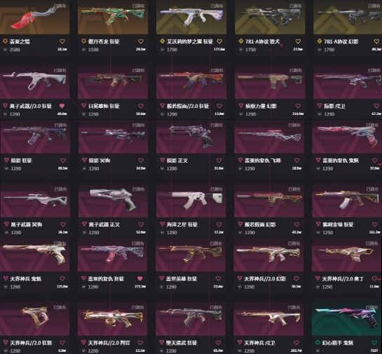 可排位✨11W库存2400R✨22冠军 奇点 掠影 天界套✨光荣 VCT爪 剥皮 机车 威龙 莲花苦