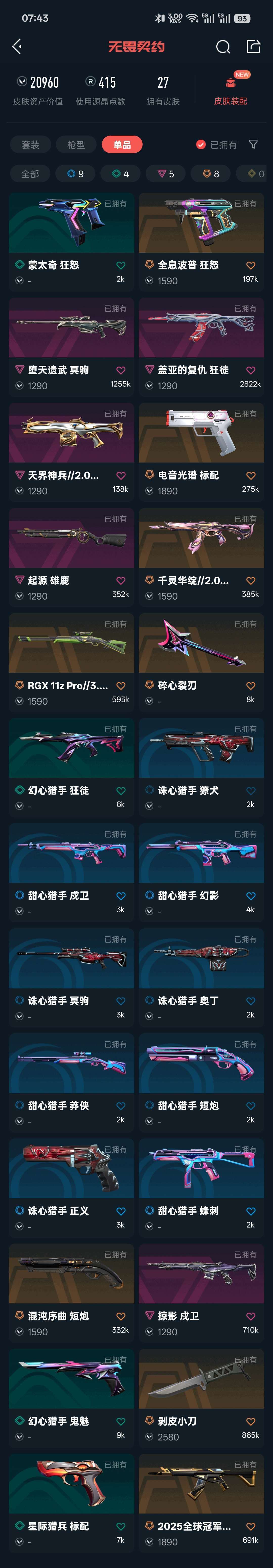 剥皮小刀,弃王大狙,25冠军狂徒,盖亚,颗秒幻影