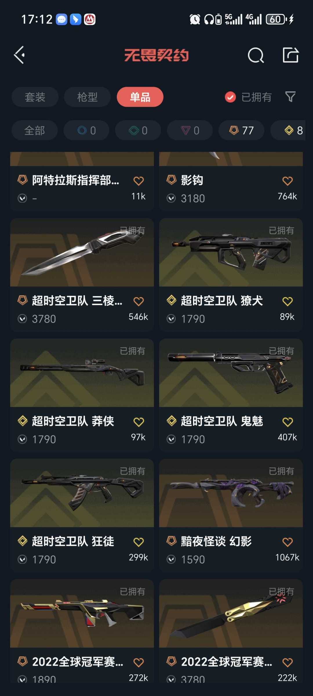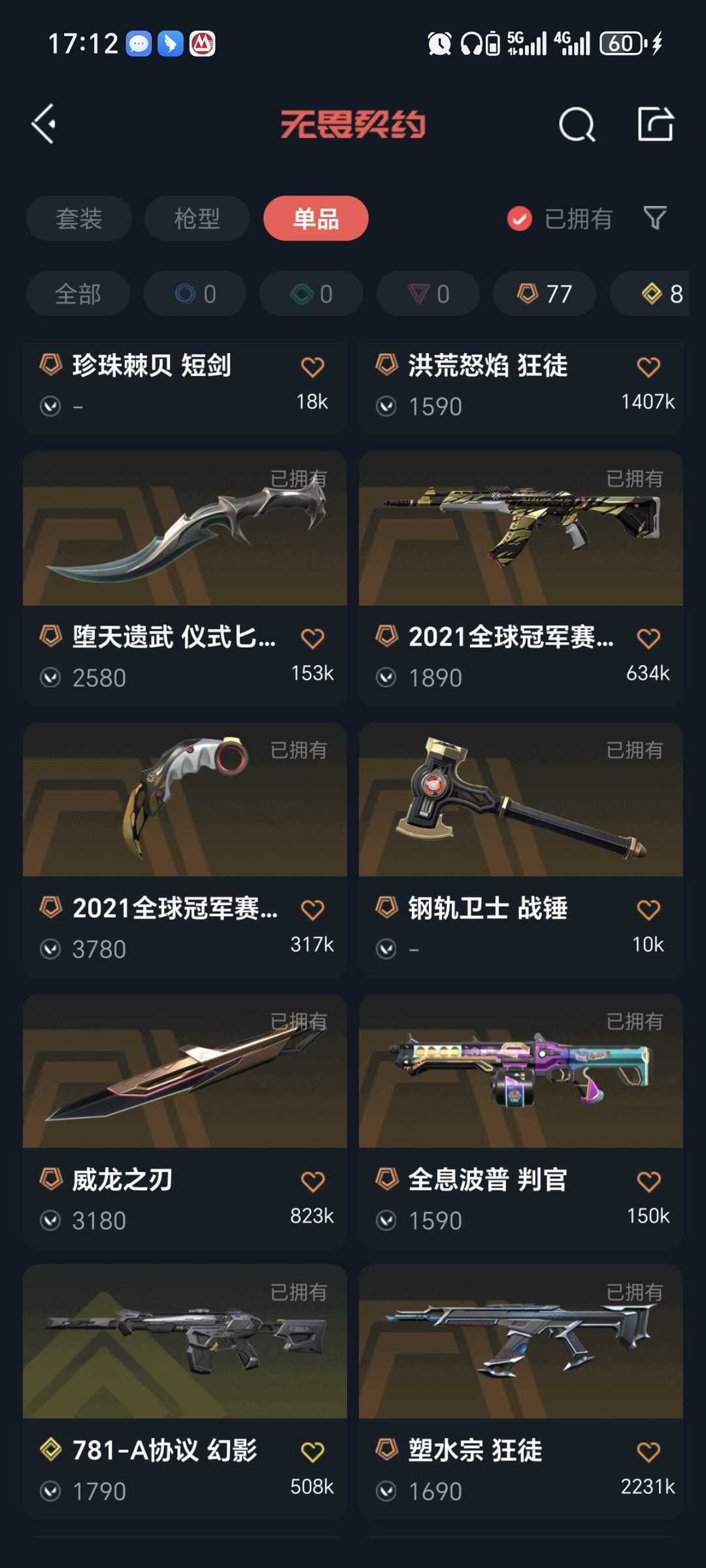 武器皮肤数量:312