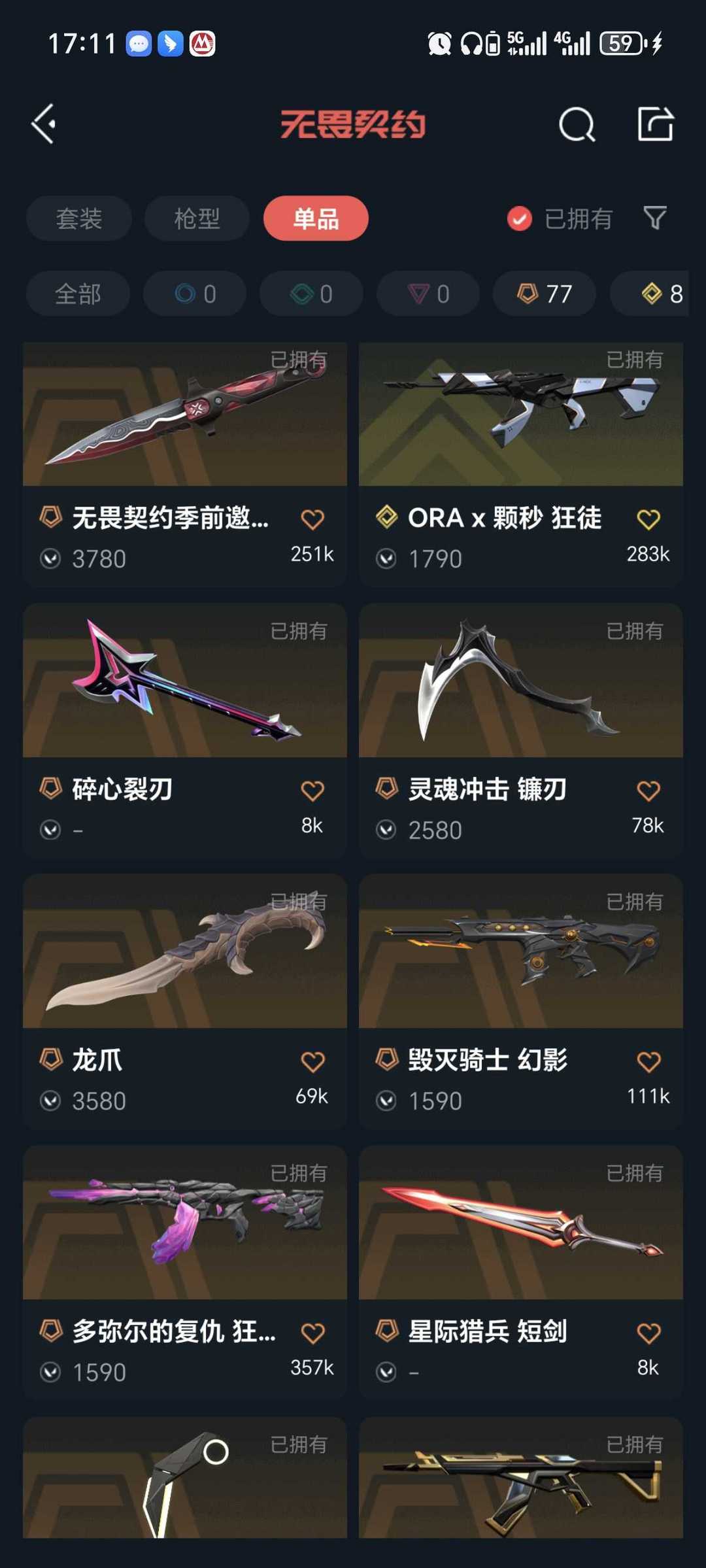 传奇数量:77