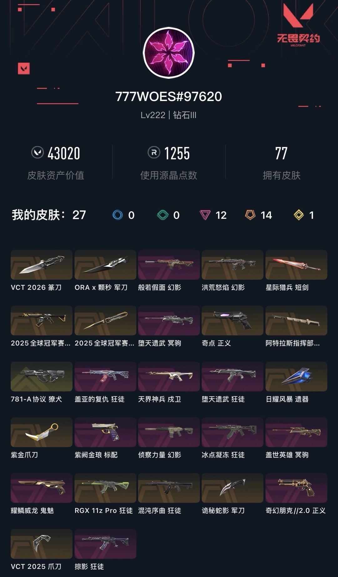 禁止排位 26vct刀 盖亚ak 流脓m4 奇点正义 25冠军套 vct爪刀 颗秒小刀等等4万vp